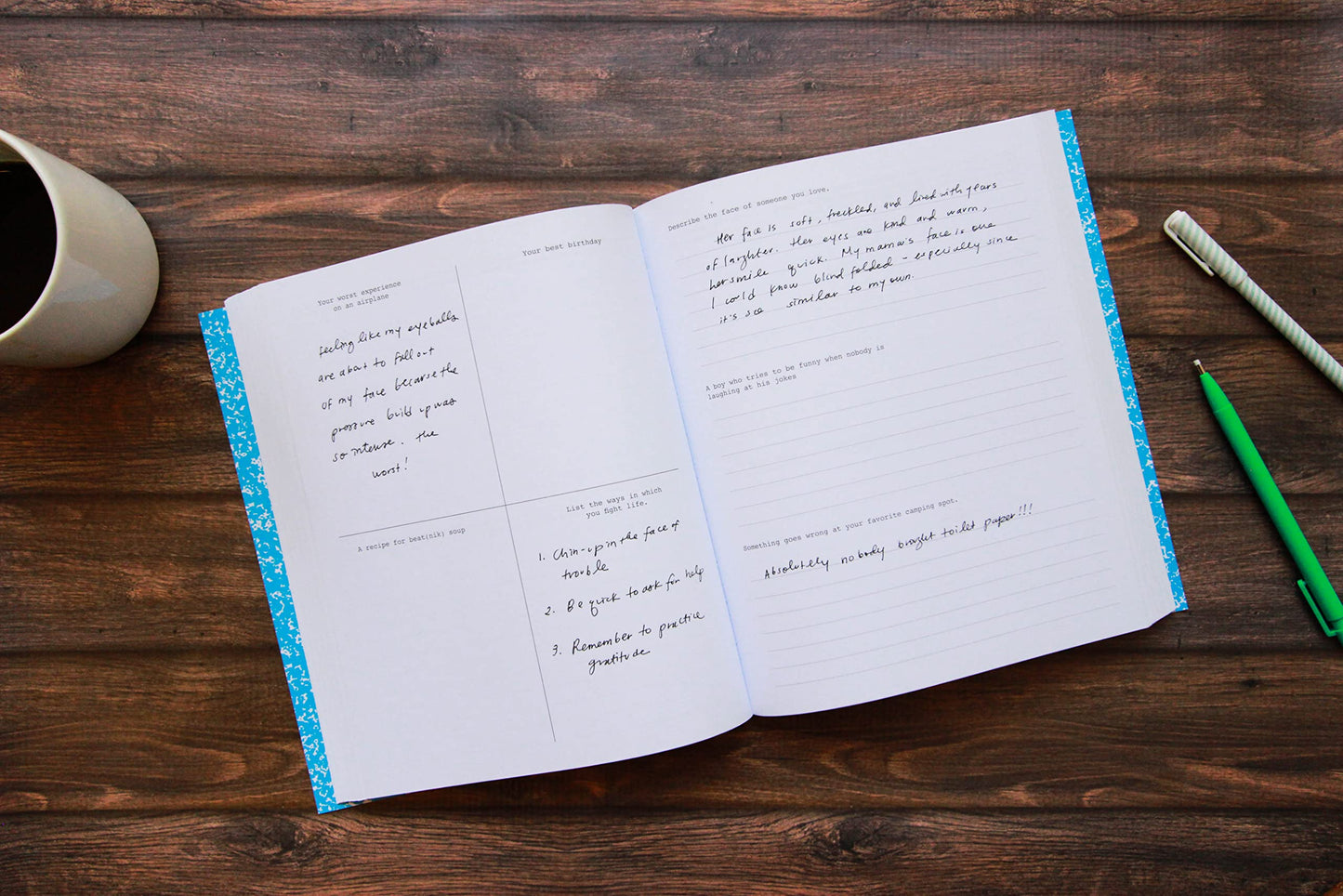 A collection of 642 outrageous and witty writing prompts: Banish writer's block with 642 Things to Write, a fun and playful journal that invites inspiration with plenty of space to write it all down. Brimming with entertaining exercises, this writing prompt journal is sure to get the creative juices flowing.