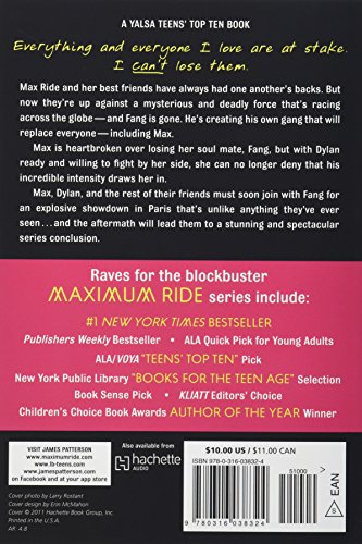 Max is heartbroken over losing Fang, her soul mate. Her closest friend. But with Dylan ready and willing to fight by her side, and she can no longer deny that his incredible intensity draws her in. Max, Dylan, and the rest of their friends must soon join forces with Fang and his new gang for an explosive showdown in Paris that's unlike anything you've ever imagined...or read.