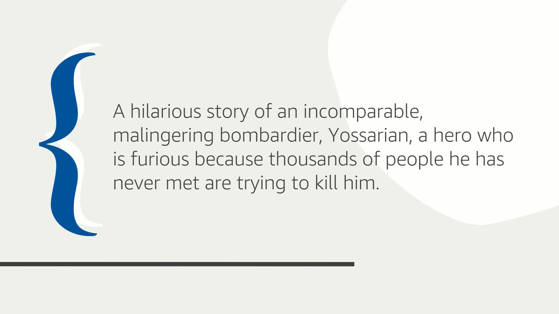 Fifty years after its original publication, Catch-22 remains a cornerstone of American literature and one of the funniest—and most celebrated—books of all time. In recent years it has been named to “best novels” lists by Time, Newsweek, the Modern Library, and the London Observer.