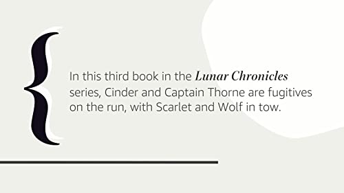 Cinder and Captain Thorne are fugitives on the run, with Scarlet and Wolf in tow. Together they're plotting to overthrow Queen Levana and her army.