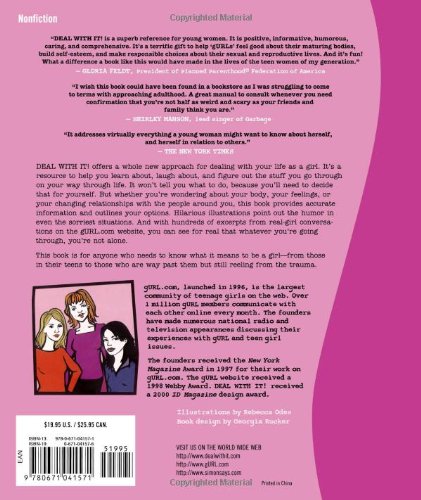 Details: Deal With It! offers a whole new approach for dealing with your life as a girl. It's a resource to help you learn about, laugh about, and figure out the stuff you go through on your way through life. It won't tell you what to do, because you'll need to decide that for yourself. But whether you're wondering about your body, your feelings or your changing relationships with the people around you, this book provides accurate information and outlines your options. Hilarious illustrations point out the humor in even the sorriest situations. And with hundreds of excerpts from real-girl conversations on the gURL.com website, you can see for real that whatever you're going through, you're not alone.