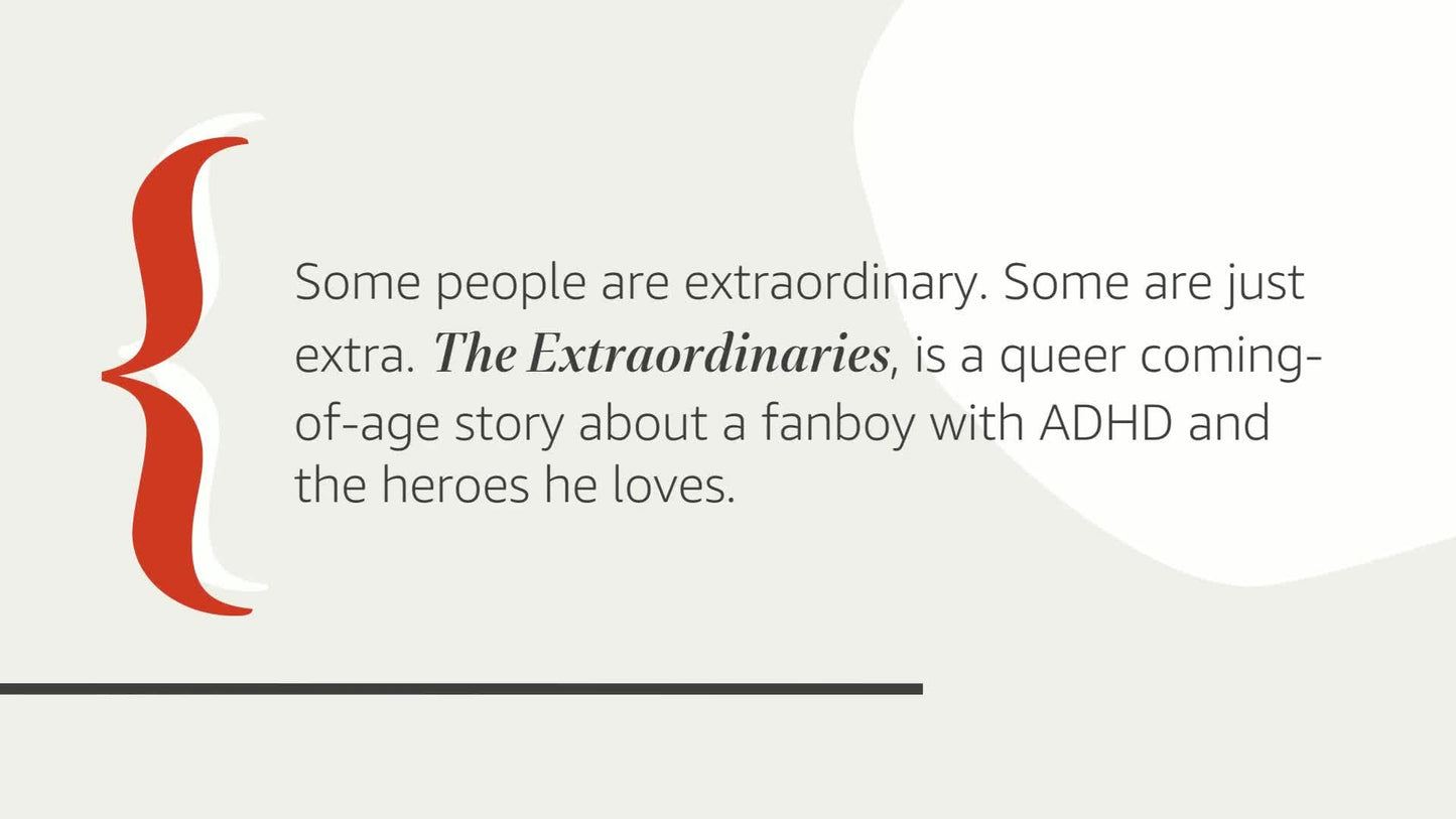 Some people are extraordinary. Some are just extra. New York Times and USA Today bestselling author TJ Klune's YA debut, The Extraordinaries, is a queer coming-of-age story about a fanboy with ADHD and the heroes he loves.