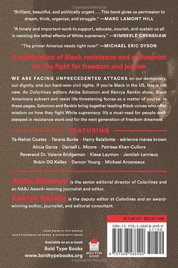 Many of us are facing unprecedented attacks on our democracy, our privacy, and our hard-won civil rights. If you're Black in the US, this is not new. As Colorlines editors Akiba Solomon and Kenrya Rankin show, Black Americans subvert and resist life-threatening forces as a matter of course. In these pages, leading organizers, artists, journalists, comedians, and filmmakers offer wisdom on how they fight White supremacy. It's a must-read for anyone new to resistance work, and for the next generation of leaders building a better future.