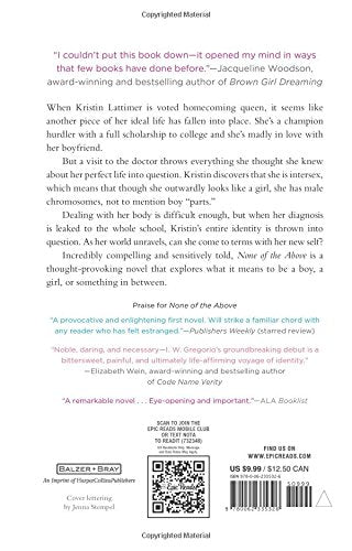 Incredibly compelling and sensitively told, None of the Above is a thought-provoking novel that explores what it means to be a boy, a girl, or something in between.