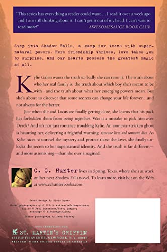 Just when she and Lucas are finally getting close, she learns that his pack has forbidden them from being together. Was it a mistake to pick him over Derek? And it's not just romance troubling Kylie. An amnesia-stricken ghost is haunting her, delivering the frightful warning, someone lives and someone dies. As Kylie races to unravel the mystery and protect those she loves, she finally unlocks the truth about her supernatural identity, which is far different―and more astonishing―than she ever imagined. Don’t miss the third book in C. C. Hunter’s riveting, New York Times bestselling Shadow Falls series, Taken at Dusk!