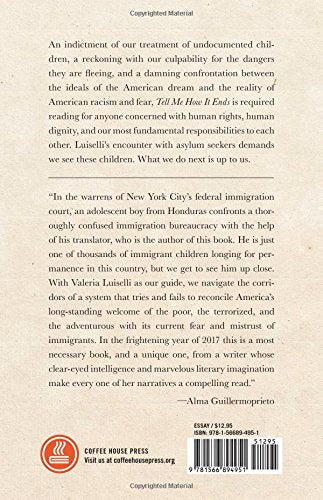 "The bureaucratic labyrinth of immigration, the dangers of searching for a better life, all of this and more is contained in this brief and profound work. Tell Me How It Ends is not just relevant, it's essential."―Mark Haber, Brazos Bookstore