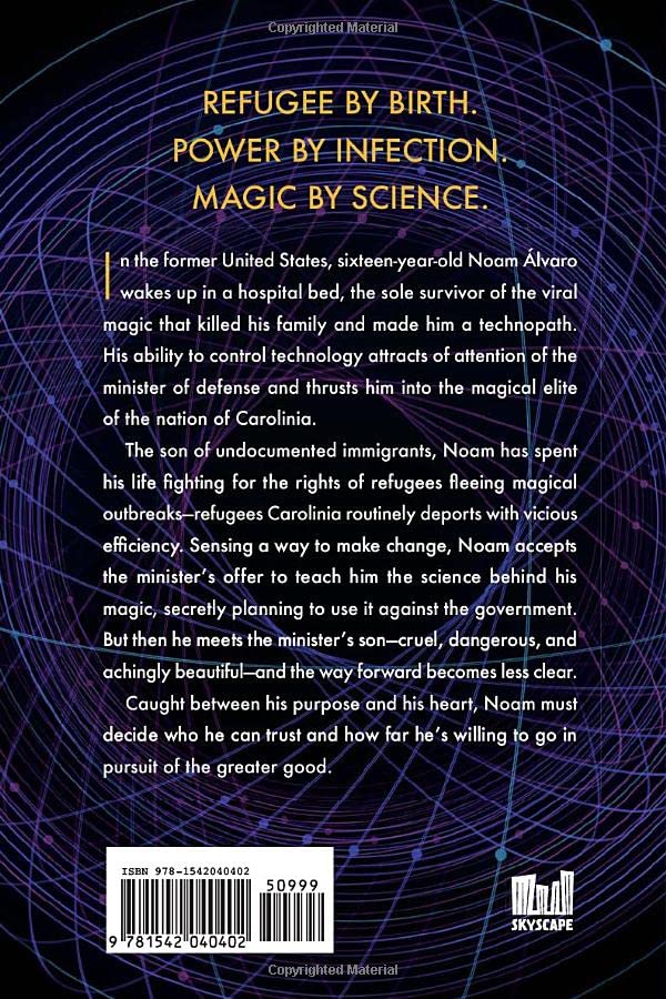 In the former United States, sixteen-year-old Noam Álvaro wakes up in a hospital bed, the sole survivor of the viral magic that killed his family and made him a technopath. His ability to control technology attracts the attention of the minister of defense and thrusts him into the magical elite of the nation of Carolinia.