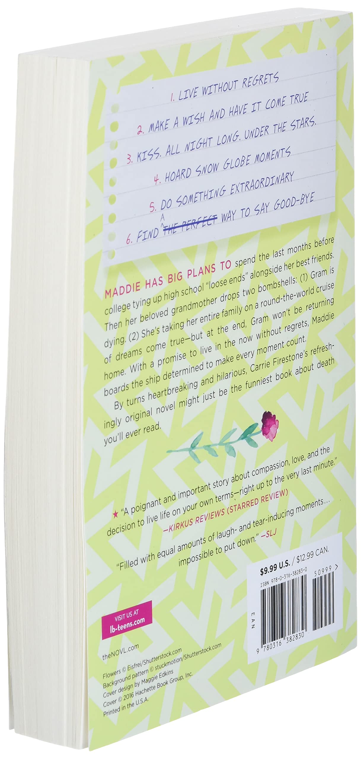 Seventeen-year-old Maddie O'Neill Levine lives a charmed life, and is primed to spend the perfect pre-college summer with her best friends and young-at-heart socialite grandmother (also Maddie's closest confidante), tying up high school loose ends. Maddie's plans change the instant Gram announces that she is terminally ill and has booked the family on a secret "death with dignity" cruise ship so that she can leave the world in her own unconventional way - and give the O'Neill clan an unforgettable summer of dreams-come-true in the process.